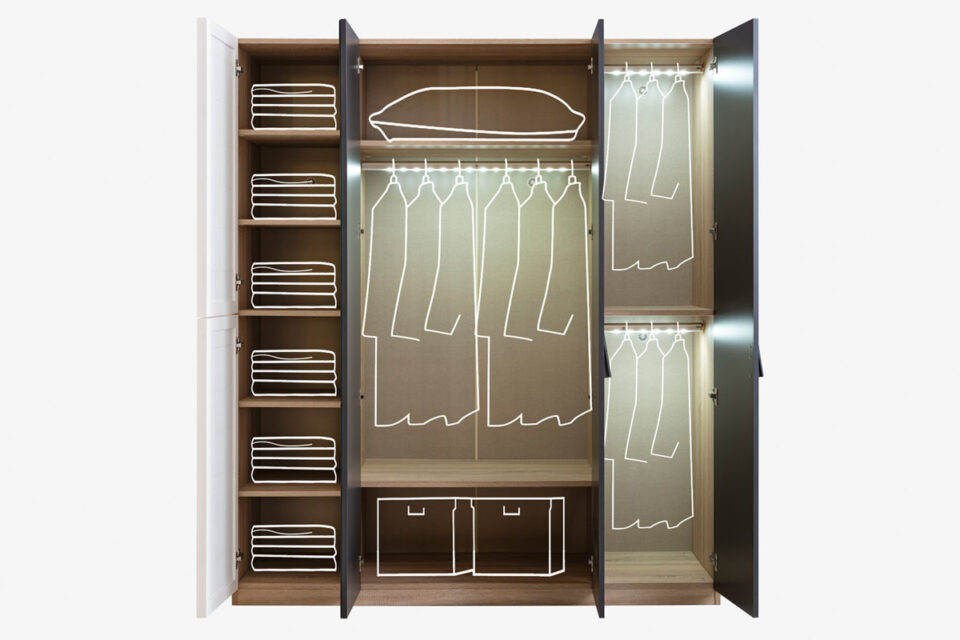 V notranjosti omare so LED osvetlitev in obešalni nosilci.