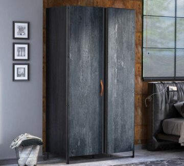Garderobna omara Dark Metal ima vrata, ki se mehko zapirajo. Ta omara resnično zagotavlja ogromno prostora za hranjenje oblačil. Ima številne police, obešalnik, predal in celo obešalnike na vratah. Kovinsko podnožje je v črni barvi. Zaščitena je z melaminom, ki ščiti pred praskami in prahom.