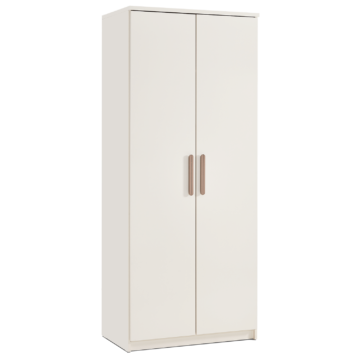 Svetla garderobna omara Happy se ob elegantnem videzu odlikuje še s prostorno zasnovo, ki vključuje obešalno palico z LED svetilom in dva predala. Vrata in predali delujejo na mehanizem tihega zapiranja. Izdelana je iz oplemenitene iverne plošče. Robove ščiti ABS robni trak.