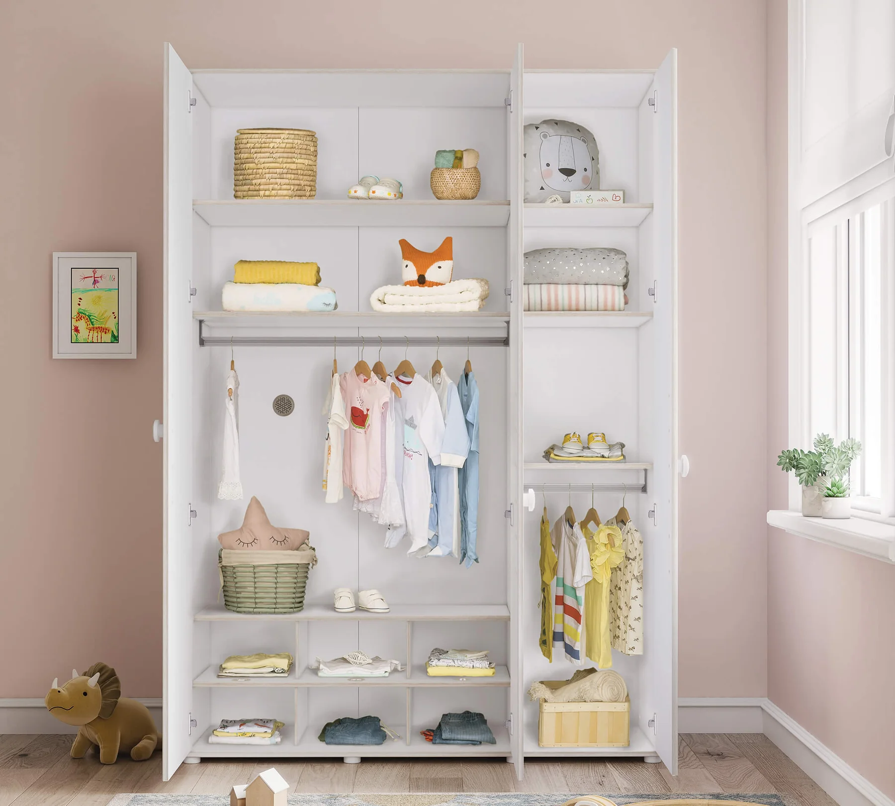 Garderobna omara Montes je sestavljena iz dvoje vrat v beli barvi. Police, obešalniki in ročke so zasnovani tako, da se prilagodijo glede na višino otroka. Površina ročajev je obdana s posebno mehko prevleko, ki daje občutek mehke teksture. Omara je delo znanega proizvajalca pohištva Cilek. Zaščitena je z melaminom, ki ščiti pred praskami in prahom.