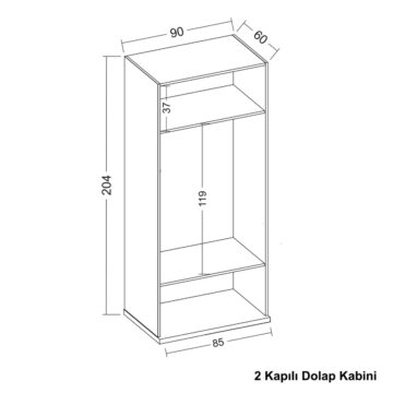 - Dimenzije: Širina 89 cm, globina 59 cm, višina 204 cm. Idealne dimenzije omare zagotavljajo prostorno shranjevalno rešitev, ne da bi zavzela preveč prostora v sobi.