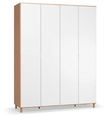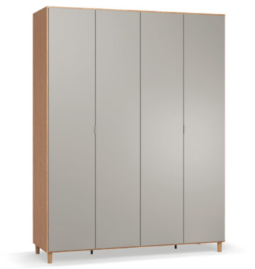 Štirivratna garderobna omara Simple je prava garderoba, združena v enem kosu pohištva. Njena premišljena notranjost omogoča, da ostanejo oblačila in dodatki lepo organizirani. Pregibna vrata in vgrajena LED osvetlitev zagotavljajo enostaven dostop in preglednost. Popolno različico omare lahko oblikujete z izbiro barve.