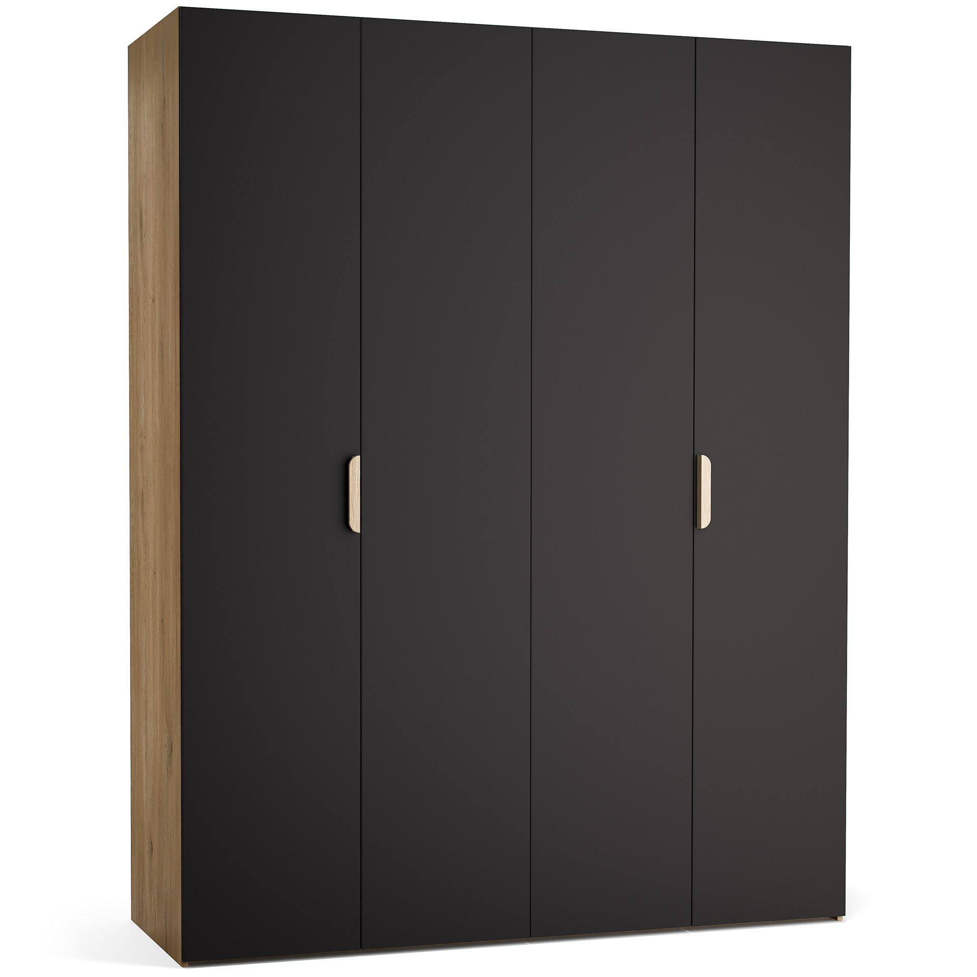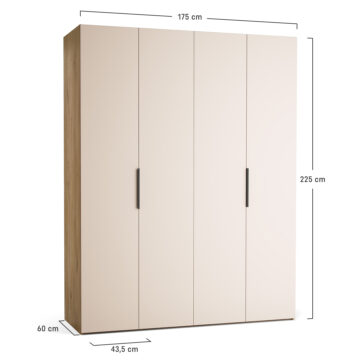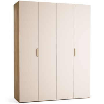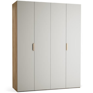 Z garderobno omaro Stor lahko ustvarite praktično in estetsko zasnovo v spalnici ali hodniku. Prostorna notranjost nadomešča samostojno garderobo in omogoča lažjo organizacijo oblačil ter modnih dodatkov. Zaradi prilagodljivega sistema in možnosti razširitve s stranskimi elementi se bo popolnoma prilagodila vašim potrebam in življenjskemu slogu.