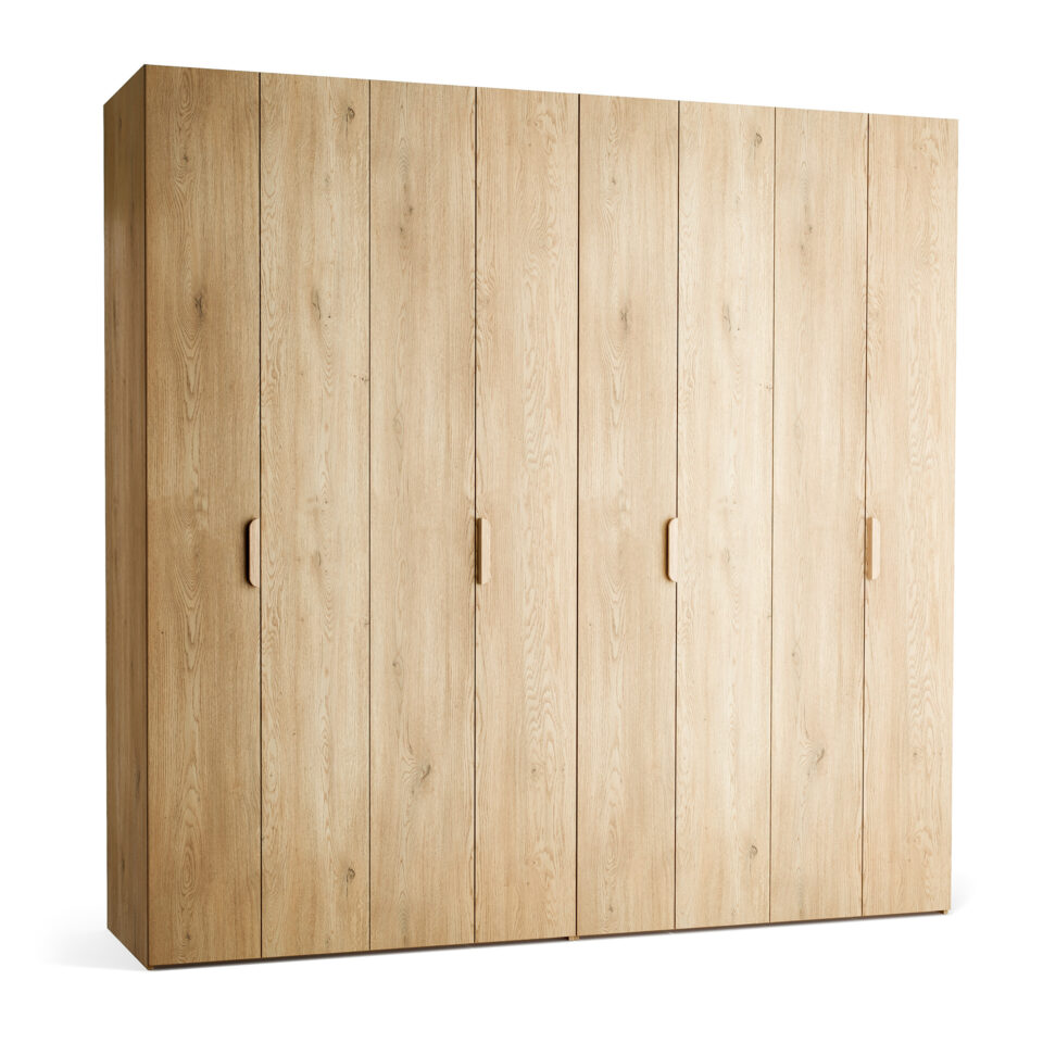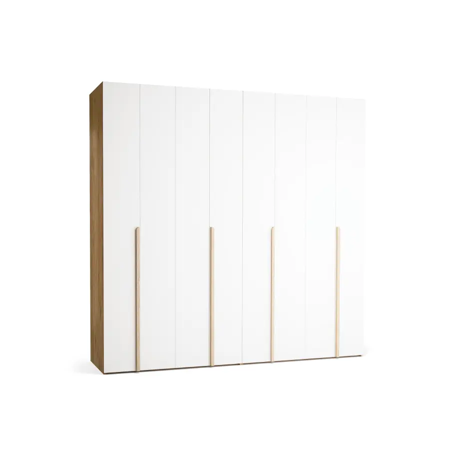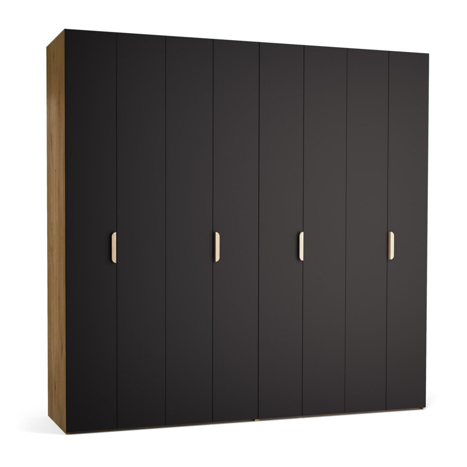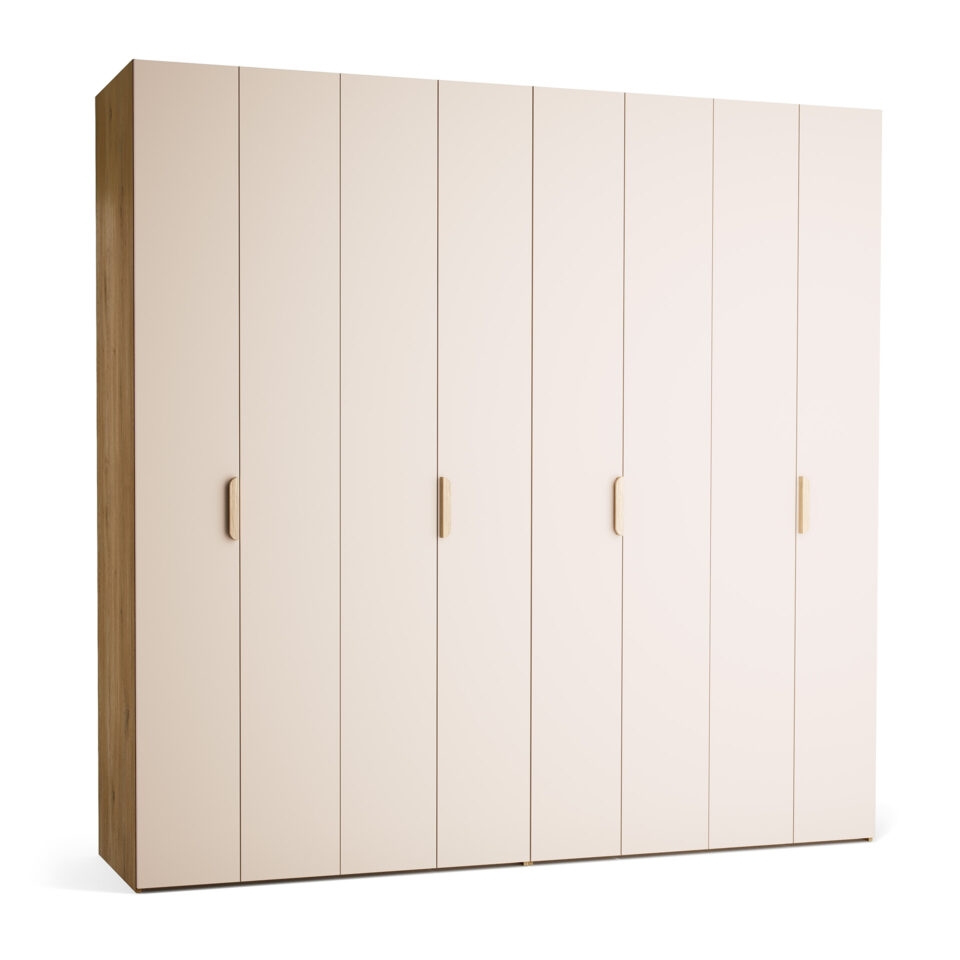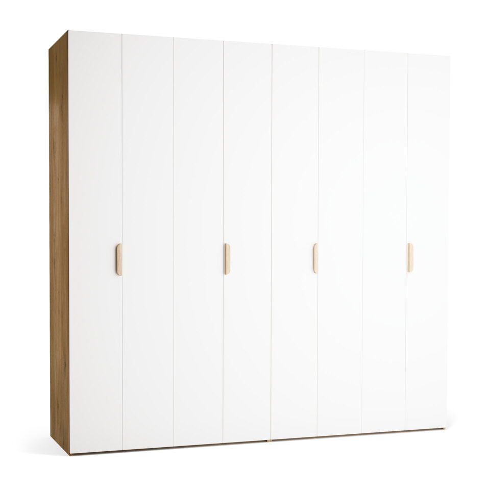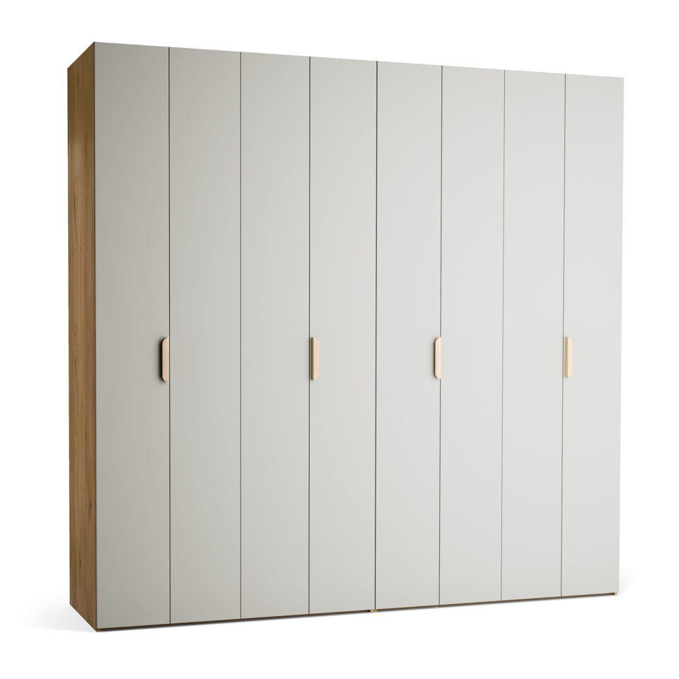 Garderobna omara Stor v širini 250 cm je odlična izbira za vse, ki iščejo prostorno in funkcionalno rešitev za shranjevanje. Nastala je s povezavo dveh omar dimenzije 125 × 240 cm, zato ponuja izjemno veliko prostora za oblačila in dodatke, hkrati pa ohranja eleganten videz in udobno uporabo. Odlično se obnese tako kot samostojna omara kot tudi kot del večje vgradne postavitve. Predstavlja praktično alternativo pohištvu po meri – na voljo je takoj, z možnostjo izbire notranje konfiguracije in dodatnih elementov.