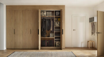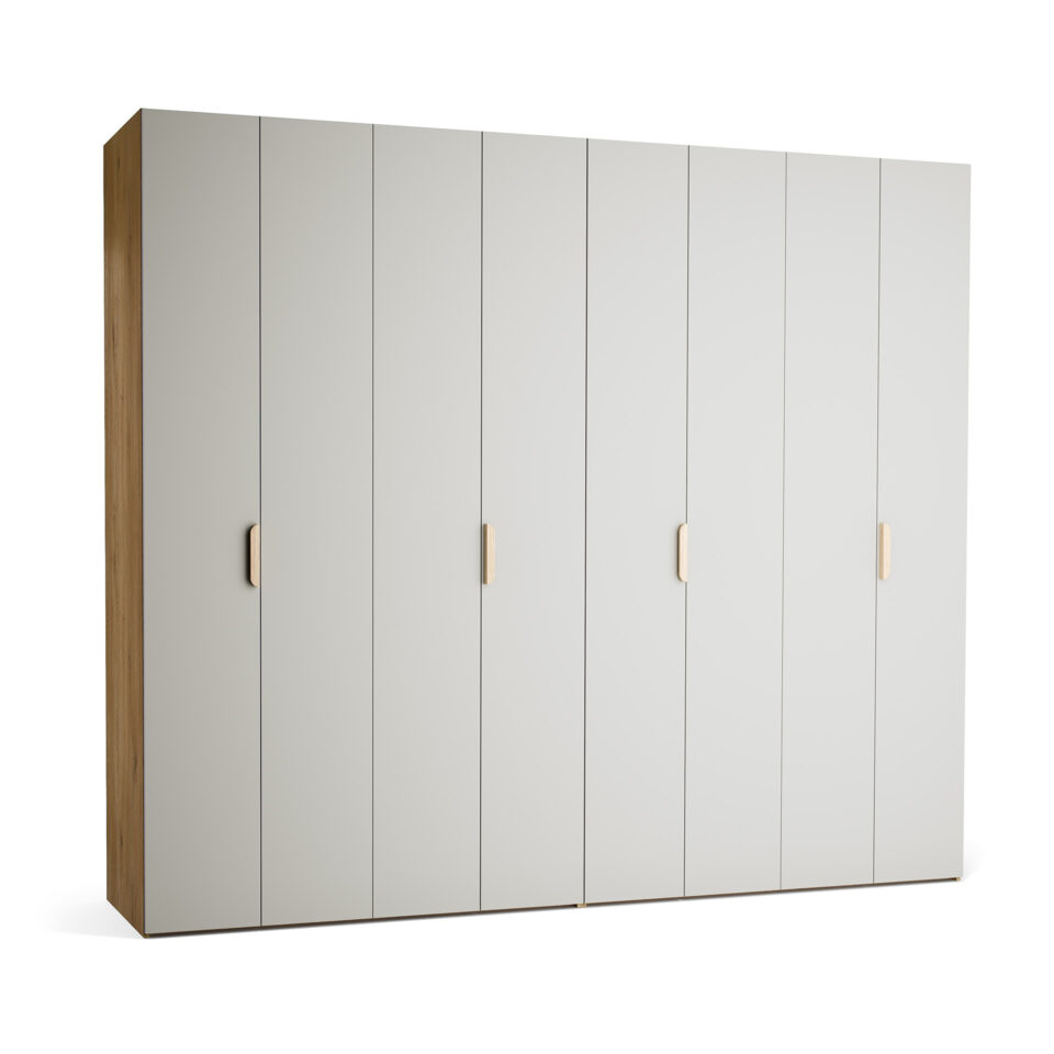 Notranjost lahko dopolnite z dodatnimi policami ali kovinskim obešalnikom za dodatke. Omaro je možno razširiti tudi z bočno omaro, ki poveča prostor za shranjevanje; izbira kontrastne barve pa ustvari zanimiv vizualni učinek.