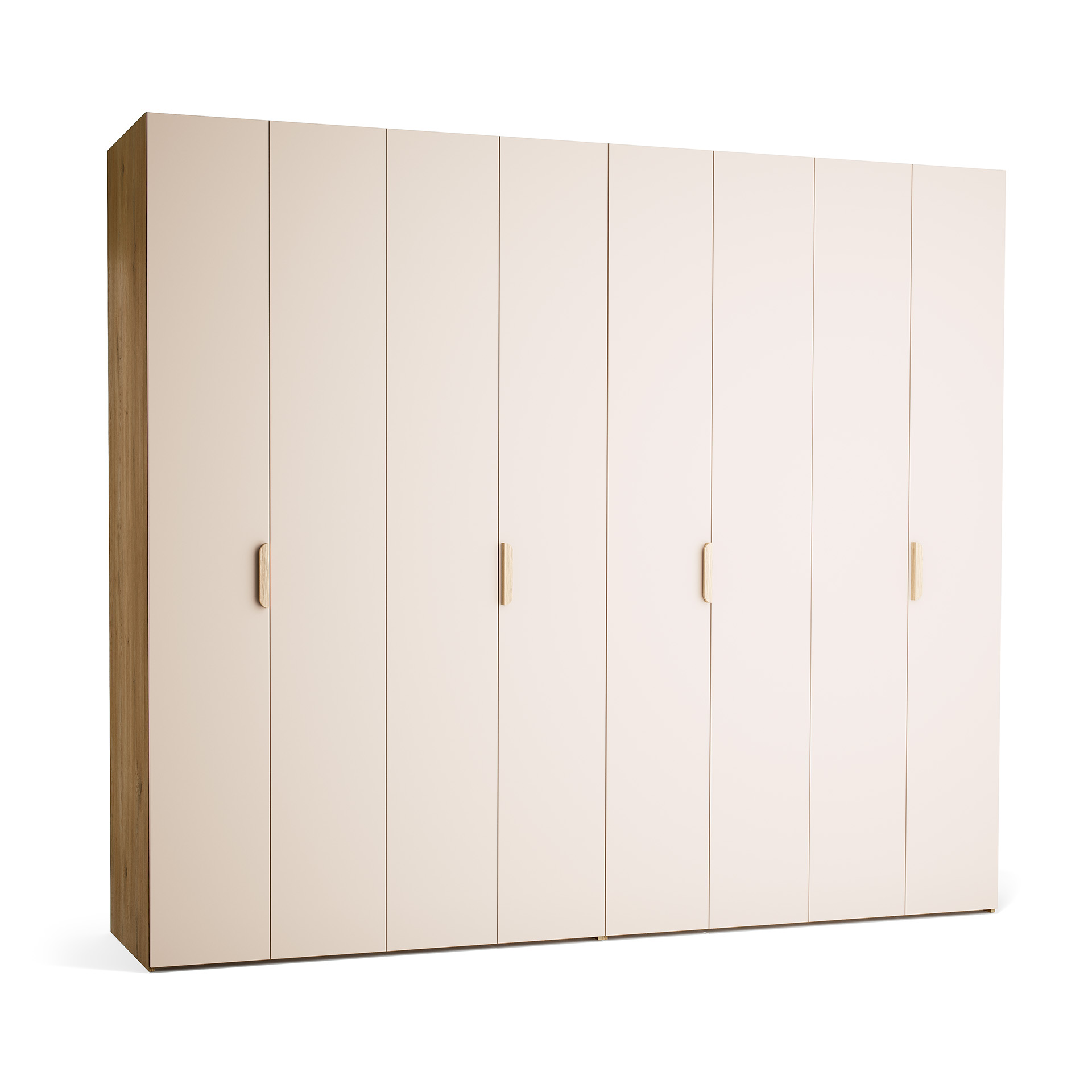 Notranjost lahko dopolnite z dodatnimi policami ali kovinskim obešalnikom za dodatke. Omaro je možno razširiti tudi z bočno omaro, ki poveča prostor za shranjevanje; izbira kontrastne barve pa ustvari zanimiv vizualni učinek.
