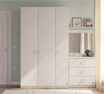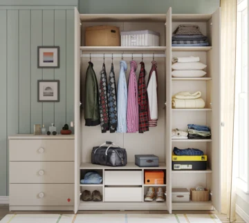 Garderobna trodelna omara Varia Omara modernega izgleda in bogato notranjosto omare. Prostorna notranjost vam omogoča enostavno shranjevanje vseh vaših oblačil, obutve in dodatkov.