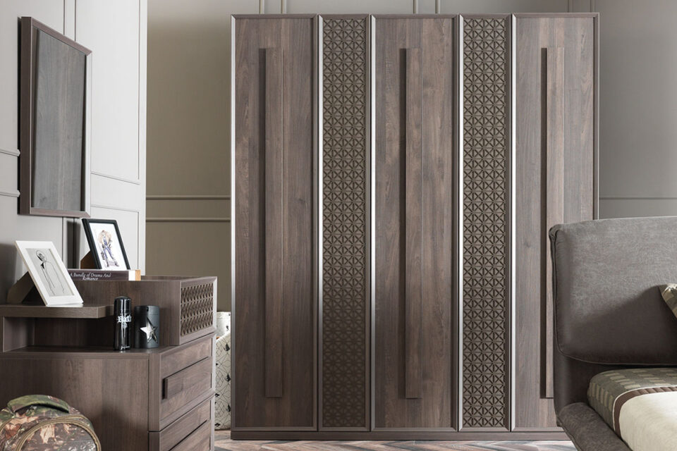 Garderobna omara iz kolekcije mladinskih sob Venera je zasnovana z mislijo na sodobne potrebe po shranjevanju, združuje pa tudi estetsko dovršenost in funkcionalnost. S svojo paletno zasnovo v sivi, rjavi in črni barvi, obogateno z izjemnimi dekorativnimi vstavki, ta omara predstavlja izstopajoč kos pohištva, ki vsakemu prostoru doda moderen in eleganten pridih.