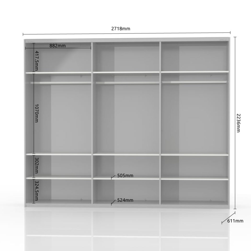 Dimenzije omare so: Š 280 X V 224 X G 61 cm.