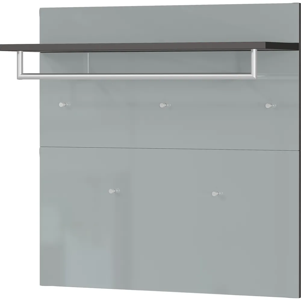 Panel ima pet kavljev, polico in obešalnik za oblačila, kar omogoča prilagodljivo shranjevanje.