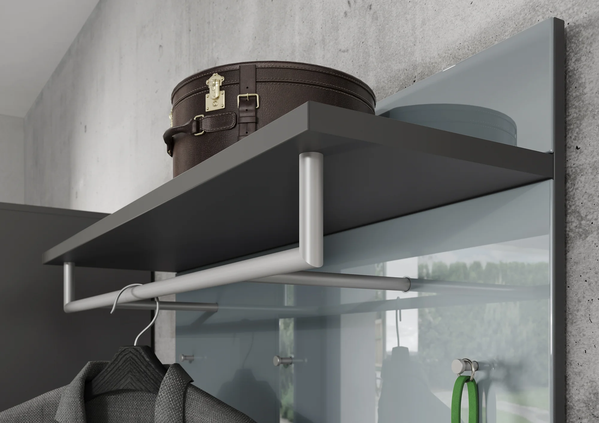 Ta panel je idealen za sodobne bivalne prostore in ponuja rešitev za varčevanje s prostorom za shranjevanje jaken, plaščev in dodatkov.