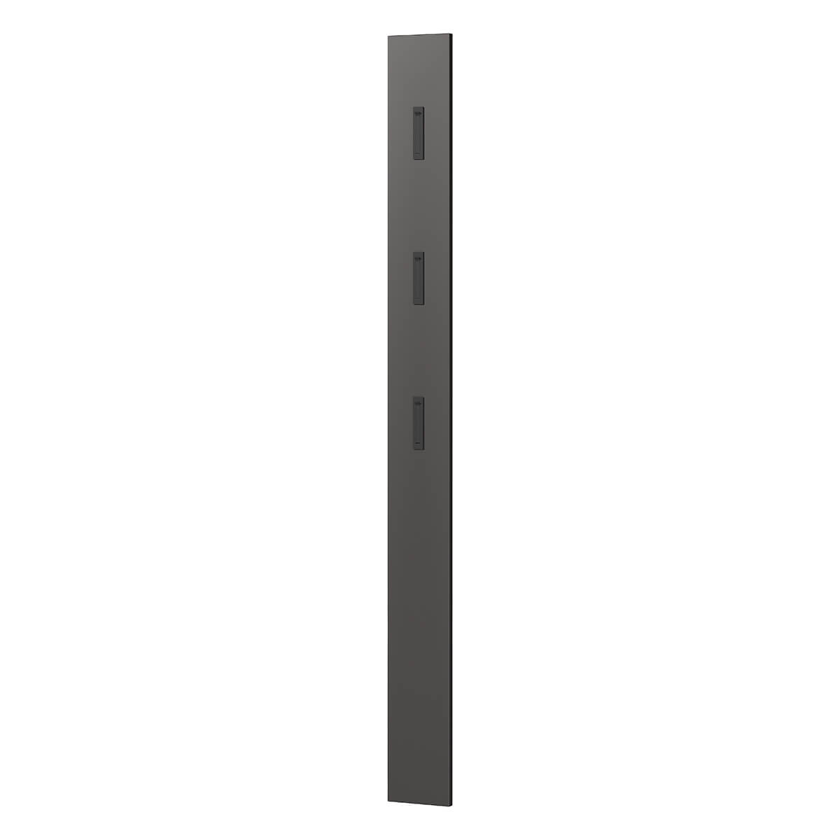 Garderobni panelni obešalnik 3728 ima tri zložljive kovinske kavlje s črnim prašnim premazom. Plašč, torbo ali šal lahko obesite neposredno na kavelj ali pa uporabite obešalnike. Stenski obešalnik je visok 170 cm, širok 15 cm in globok 3 cm.