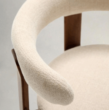 - Oblazinjen stol iz debelega, dvobarvnega bež chenille blaga z dodatkom recikliranega poliestra.