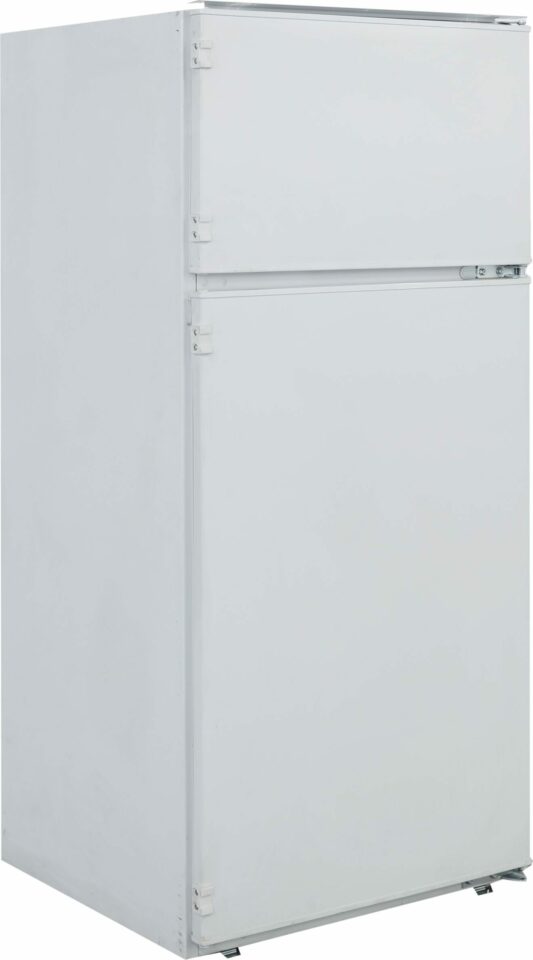 Hladilnik z zamrzovalnim predalom RFI4121P1 je priročen vgradni integrirani hladilnik s težo 38 kg in dimenzijami 57,3 × 57,3 × 127 cm. Ta kompakten hladilnik z belo barvo in lakiranimi vrati ponuja skupni volumen 170 litrov, s prostornino hladilnega prostora 135 litrov in prostornino zamrzovalnega prostora 35 litrov.