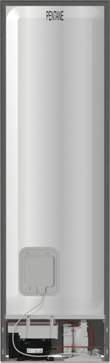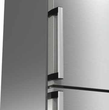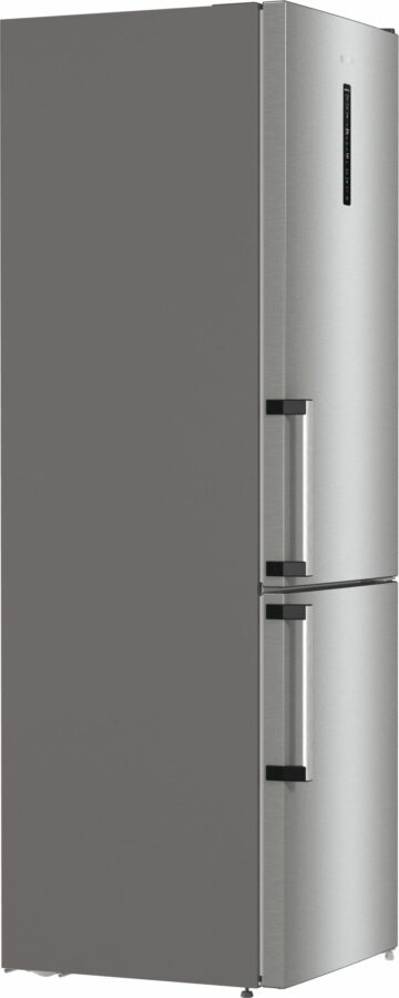 Ta model je opremljen z inverterskim kompresorjem, elektronskim upravljanjem na vratih in LED prikazovalnikom za ločeno upravljanje zamrzovalnika. Hladilnik ima razred hrupa C z 37 dB, material vrat je kolaminirana pločevina, in barva izdelka je metalizirano siva.