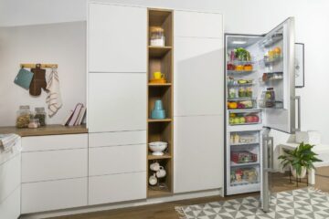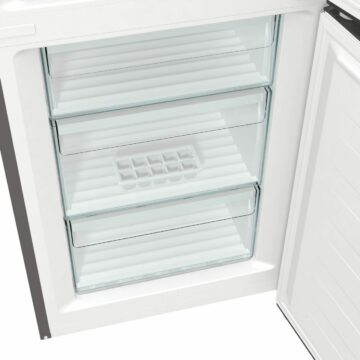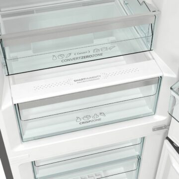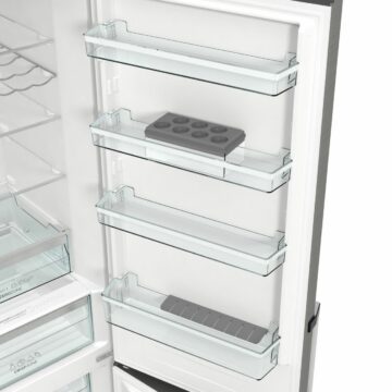 Osvetlitev hladilnega prostora je zagotovljena z LED trakom na stropu. Hladilnik ima 5 steklenih polic, žični nosilec za steklenice, 1 MultiBox posodo in XXL SpaceBox predal. Zamrzovalni prostor vključuje 3 predale in 1 klasično posodico za led.
