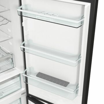 Funkcija hitrega zamrzovanja FastFreeze omogoča hitro in globoko zamrzovanje, varčevalni program EcoMode pa poskrbi za varčnost. Osvetlitev hladilnega prostora je LED trak na stropu. Hladilnik ima 4 steklene police, žični nosilec za steklenice in 1 enojno posodo s fiksnim varovalom za steklenice v vratih.