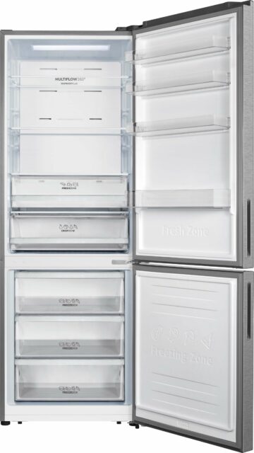 Hladilnik je opremljen z inverterskim kompresorjem, funkcijo hitrega zamrzovanja FastFreeze, varčevalnim programom EcoMode, LED osvetlitvijo na stropu, NoFrost Plus tehnologijo in MultiFlow hlajenjem v hladilniku.