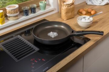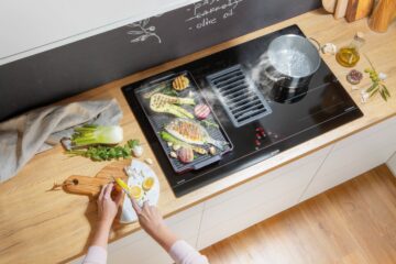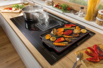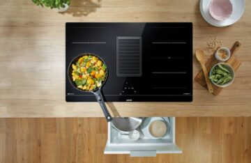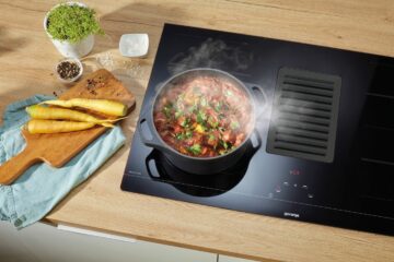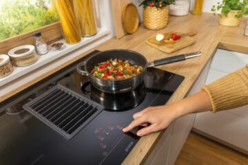 Indukcijska kuhalna plošča z napo HET949BSC združuje učinkovitost in napredne funkcije za vrhunsko kuharsko izkušnjo.