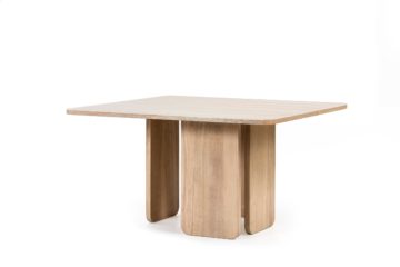 Zgornji del je izdelan iz MDF plošče, ki jo bogati furnir jesena v naravni barvi, noge pa iz masivnega lesa.