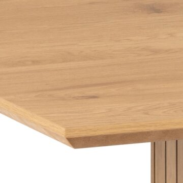 Jedilna miza Colima prinaša prefinjeno eleganco v vašo jedilnico. Zasnovana v pravokotnem formatu, s čistimi linijami in vertikalnimi lamelami, ta miza v videzu divjega hrasta postane osrednji kos vsake moderne jedilnice. Njen zemeljski ton in struktura lesa ustvarjata prijetno vzdušje, ki obogati vsak obrok.
