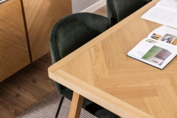 Jedilniška miza Galway je popolna za vse, ki želijo v jedilnici ustvariti prijetno in elegantno vzdušje. Njena velika površina zagotavlja dovolj prostora za udobno sedenje šestih oseb, hkrati pa njen nordijski dizajn s prefinjenim vzorcem ribje kosti doda prostoru pridih prefinjenosti in naravne lepote. Idealen kos za vsakodnevne obroke in posebne priložnosti.