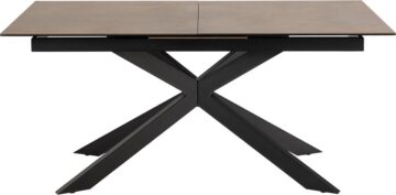 Jedilna miza Irwine je eleganten in funkcionalen dodatek za vsako jedilnico. Njen površinski sloj iz rjavega rustikalnega keramika je odporen na toploto in praske, kar zagotavlja enostavno vzdrževanje. Miza se preprosto podaljša s sinhroniziranim mehanizmom: preprosto potegnite za konec mize in podaljšek se bo gladko pojavil v sredini. Črna praškasto prevlečena osnovna konstrukcija v obliki križa omogoča udobno sedenje okoli mize, kar je idealno za družinska srečanja ali druženje s prijatelji.