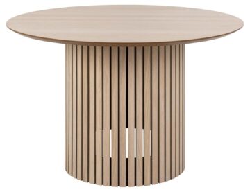 Jedilniška miza Linley je popolna izbira za družinske obroke ali manjša druženja. Zaradi okrogle oblike spodbuja komunikacijo in ustvarja prijetno vzdušje za vse okoli mize. Stebrna osnova z lamelastimi detajli doda vizualni poudarek, zaradi česar je ta miza eleganten kos v vsakem jedilnem prostoru.