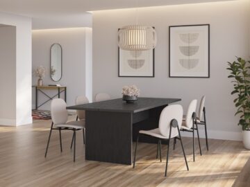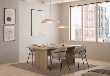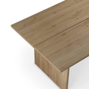 Nasvet za opremo: V naravni ali rjavi različici mizo kombinirajte s stoli iz svetlega bukovega ali črnega kovinskega ogrodja za topel skandinavski videz; črna izvedba pa se čudovito poda k oblazinjenim stolom v nevtralnem tekstilu za izrazit kontrast.