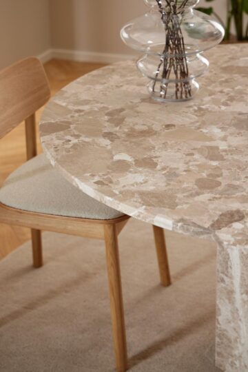 - Unikatni materiali: Vsaka miza je edinstvena zaradi naravnih variacij v barvi, površini in strukturi kamna, kar dodaja poseben značaj vsakemu kosu.