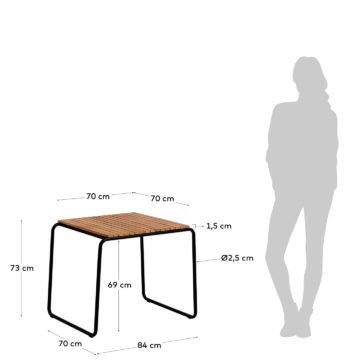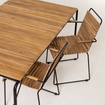 Jedilniška miza Yukari je delo dizajnerja Tapio Anttile. Jedilna plošča, izdelana iz masivnega lesa akacije, je lakirana, in zato primerna tudi za pokrito zunanjo uporabo. Mizina struktura je iz galvaniziranega jekla, odpornega na rjavenje in korozijo. Odlično se poda istoimenskemu stolu. Miza bo lepo popestrila številne terase in jedilnice. Odlikuje se tudi z lahko težo. Dobavljivi dimenziji (višina x širina x globina): 1. 73 x 165 x 90 cm – 24,2 kg 2. 76 x 84 x 70 cm – 12,5 kg