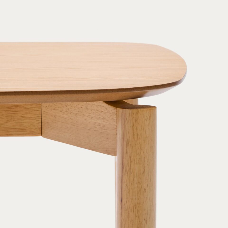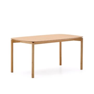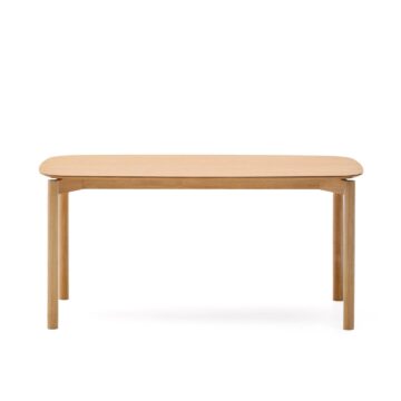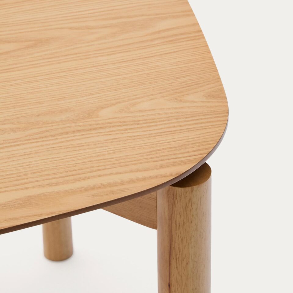 Jedilna miza Indara s furnirjem jesena v naravnem zaključku prinaša sodoben, čist in brezčasen videz v jedilnico. Navdihnjena je s trendom ravnih linij, zato deluje lahkotno in elegantno, hkrati pa ohranja topel naravni občutek lesa. Kombinacija masivnih lesenih nog iz kavčukovca in kakovostne plošče z furnirjem zagotavlja stabilnost, vzdržljivost ter prijeten ambient za vsakodnevne obroke ali druženja.