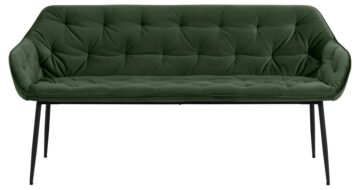 Dodajte pridih romantičnosti in elegance v svoj prostor s klopjo Brooke, oblečeno v čudovito smaragdno zeleno tkanino. Ta klop je odlična izbira za jedilnico, hodnik ali celo spalnico, saj se odlično prilega različnim stilom notranje opreme.