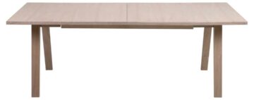 Jedilniška miza A-Line je narejena iz masivnega hrastovega lesa, ki je zaščiten s hrastovim furnirjem in tretiran z belo pigmentiranimi olji. Vključuje dva podaljška.