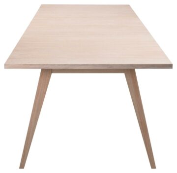 Jedilniška miza A-Line je narejena iz masivnega hrastovega lesa, ki je zaščiten s hrastovim furnirjem in tretiran z belo pigmentiranimi olji.