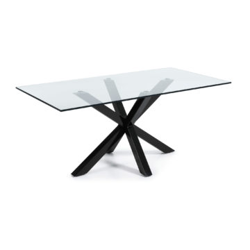 Jedilniška miza Arya ima stekleno površino, enostavno za čiščenje. Nogice so moderne, izdelane iz vrhunskega nerjavečega jekla, obarvanega v črno barvo. Miza je elegantnega videza in višine 75 cm, izbirate pa lahko med različnimi dimenzijami: 200 x 100 cm, 180 x 100 cm in 160 x 90 cm.