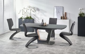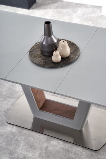 Mogočna in kakovostna jedilniška miza, ki ima zares vse v enem. Jedilniška miza Bilotti vsebuje zgornjo ploščo izdelano iz stekla, medtem ko je njeno ogrodje izdelano iz visokokakovostnega MDF-mediapana. Podnožje je izdelano iz nerjavečega jekla in obogateno z laminatiranim MDF-mediapanom. Miza je povrh vseh odlik tudi raztegljiva in na voljo v dveh odtenkih – antracit in in svetlo sivi barvi. Dimenzije jedilniške mize: 160/200 x 90 x 76 cm Teža: 100,9 kg Višina: 76 cm Proizvajalec: Halmar, znan po svoji natančnosti in kakovosti.