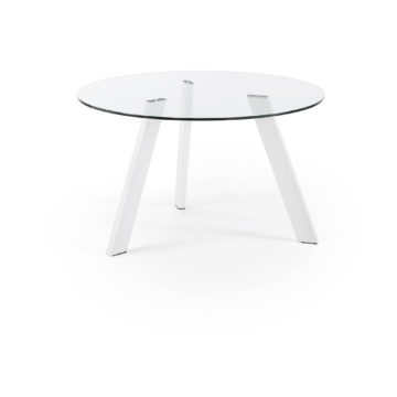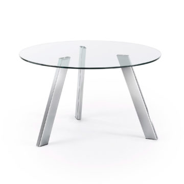 Okrogla jedilniška miza Columbia je moderne okrogle oblike. Izdelana je iz stekla, izbirate pa lahko med kromiranimi nogicami in kovinskimi nogicami v beli barvi. Miza je enostavna za čiščenje in je primerna za moderna stanovanja.