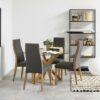 Prefinjen in sofisticiran izgled izžareva Okrogla jedilniška miza Heaven. S svojim okroglim in steklenim vrhom je prava posebnost med jedilniškimi mizami. Podnožje je kovinsko in oblečeno v odtenke hrasta.