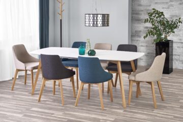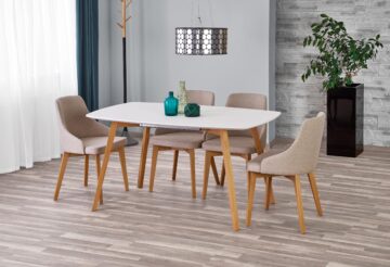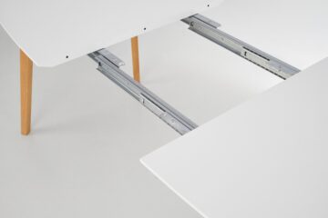 Jedilniška miza Kajetan je raztegljiva in dobavljiva v dveh dimenzijah. Noge mize so izdelane iz masivnega bukovega lesa. Mizna plošča pa j narejena iz mediapana lakiranega v belo mat barvo. Mizo lahko dopolnite z jedilniškimi stoli Toledo. Dimenzija manjše mize:
