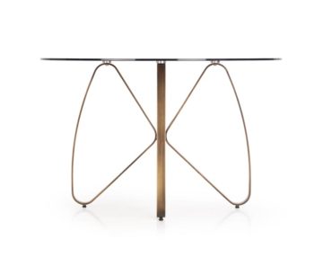 Okrogla jedilniška miza Lungo narejena iz kombinacije kovinskih nogic in steklene površine. Nogice so v zlati barvi. Jedilniško mizo Lungo priporočamo vsem, ki želijo elegantno in kakovostno mizo. Dimenzije jedilniške mize: 120 X 76 cm Teža: 10,00 kg Višina: 76 cm Rok dobave je 3-45 dni.