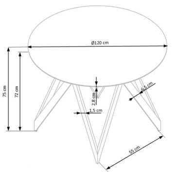 Okrogla jedilniška miza Mozambik je za razliko od standardnih jedilniških miz okrogle oblike. Zgornja površina je izdelana iz laminiranega MDF-mediapana obarvanega v odtenek zlatega hrasta. Prepleteno podnožje je jekleno in obarvano v črno barvo.