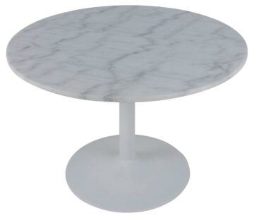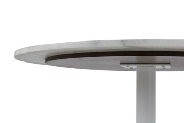 Izredno zanimiva oblika jedilniške mize Tarifa je eden izmed njenih adutov. Okrogla jedilniška miza Tarifa vsebuje zgornjo ploščo izdelano iz marmorja v beli barvi in podnožje pri katerem lahko izbirate med belo in črno barvo.