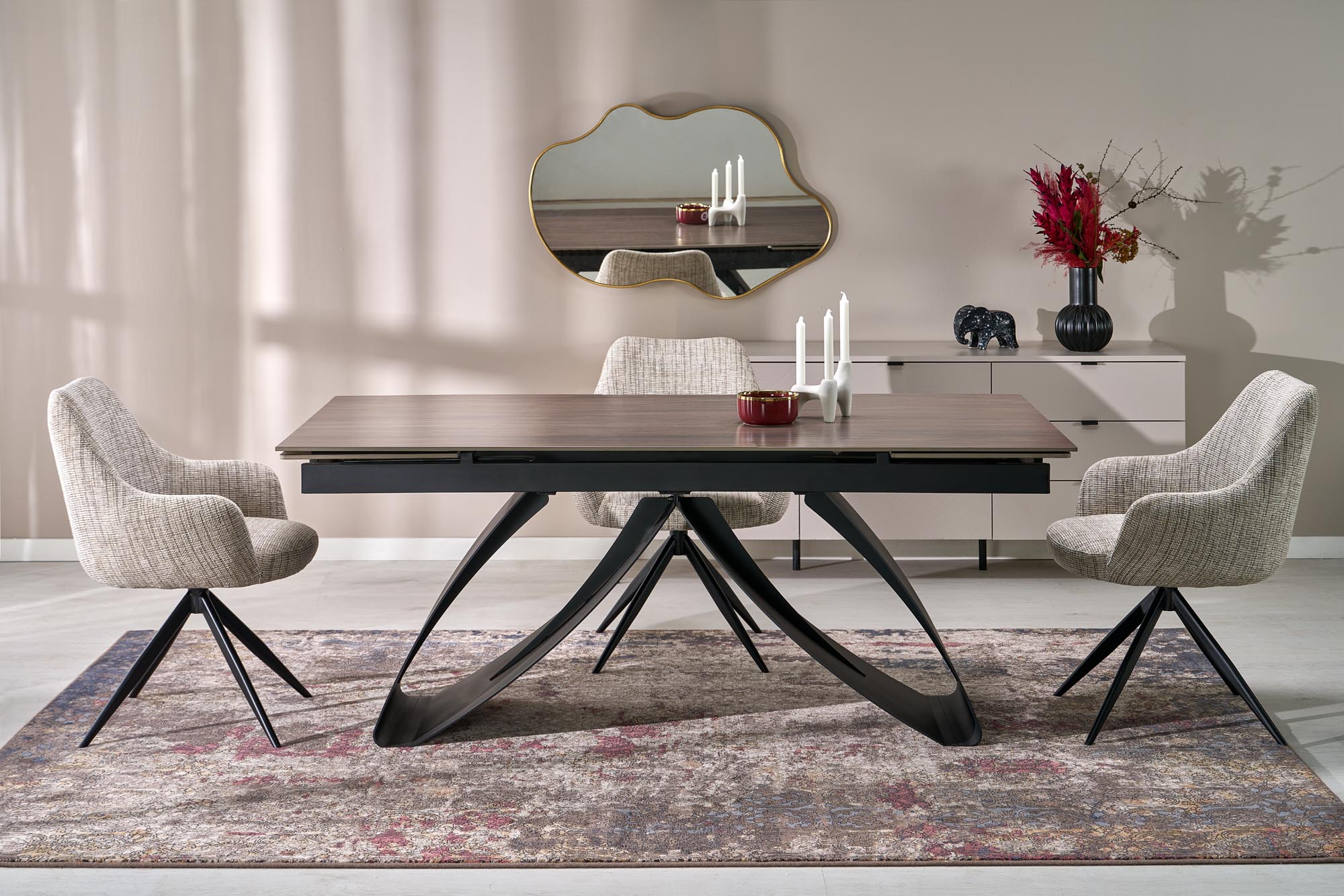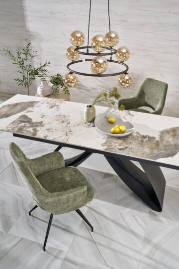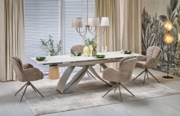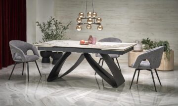 Predstavljamo vam Jedilniško raztegljivo mizo Hilario, popolno osrednjo točko za vašo sodobno jedilnico, ki združuje eleganco, funkcionalnost in prilagodljivost. Ne glede na to, ali prirejate intimno večerjo ali veliko praznično pogostitev, se Hilario enostavno prilagodi vašim potrebam, na voljo pa je v več privlačnih barvnih kombinacijah, kot so beli marmor/črna, črni marmor/črna, kašmir in črna/oreh.