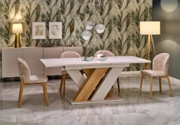 Jedilniški set Brandon predstavlja elegantno sintezo sodobnega oblikovanja in funkcionalnosti. Nova različica v barvi kašmirja in hrasta Cremona prinaša umirjen in topel videz, ki se lepo poda v skandinavsko, sodobno ali minimalistično zasnovane interierje.