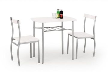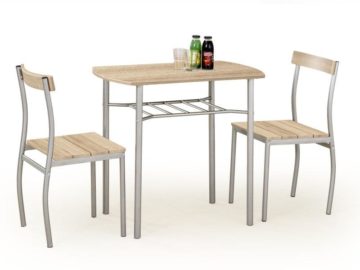 Jedilniški set Lance vsebuje mizo in dva stola. Podnožje jedilniškega stola in mize je kovinsko ter prašno lakirano. Sedišče stola in mizna plošča je iz MDF mediapana.