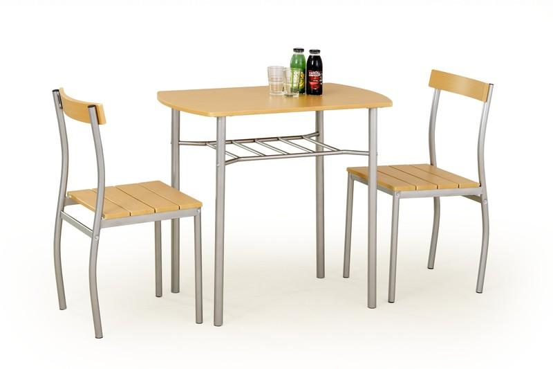Jedilniški set Lance vsebuje mizo in dva stola. Podnožje jedilniškega stola in mize je kovinsko ter prašno lakirano. Sedišče stola in mizna plošča je iz MDF mediapana.