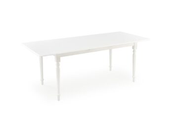 Miza Nelson je izdelana iz lakiranega MAT MDF-ja v beli barvi z masivnimi struženimi nogami iz kavčukovega lesa. Raztegljiv mehanizem omogoča hitro prilagajanje dolžine z 160 na 200 cm, kar jo naredi vsestransko uporabno tako za vsakdanje obroke kot za večje družinske dogodke. Mat zaključek mizne plošče poudari občutek čistosti in sodobnosti.