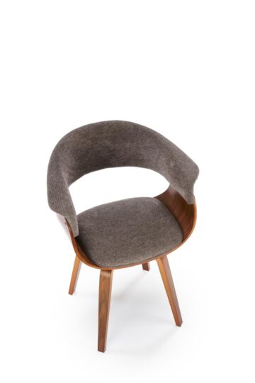 Stoli Vagner dopolnjujejo mizo z elegantnim videzom in udobno obliko. Ogrodje iz upognjene vezane plošče v barvi oreha je estetsko povezano z mizo, oblazinjenje iz tkanine ARAGON v sivi barvi pa dodaja sodoben kontrast. Naslonjalo in sedež sta ergonomsko oblikovana za udobno sedenje tudi ob daljših obrokih.