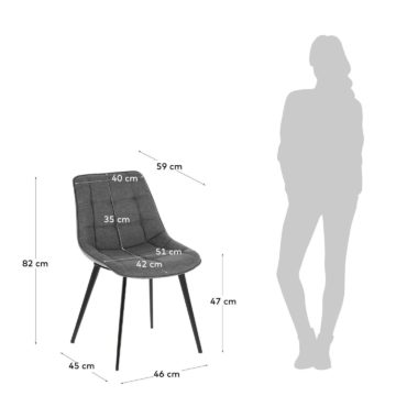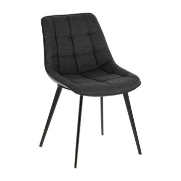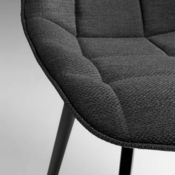 Jedilniški stol Adah odlikujejo kakovostni materiali in udoben dizajn. Oblazinjeno sedišče z naslonom je oblečeno v tkanino odporno proti madežem in tekočini. Struktura je izdelana iz jekla in za popoln videz lakirana v mat črno. Stol je dobavljiv v dveh odtenkih fleksibilne sive barve.